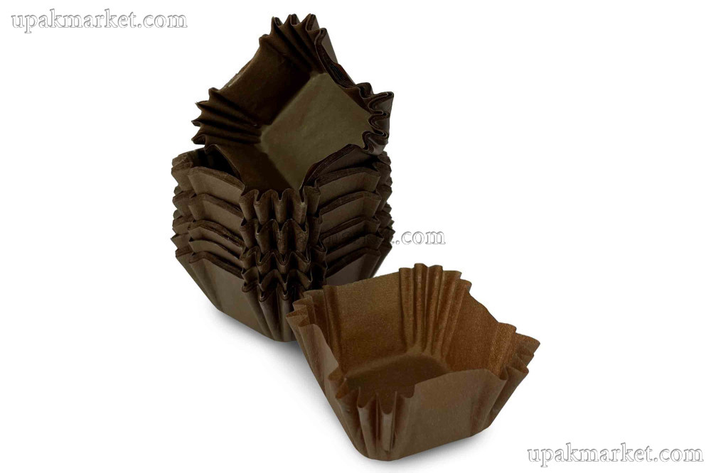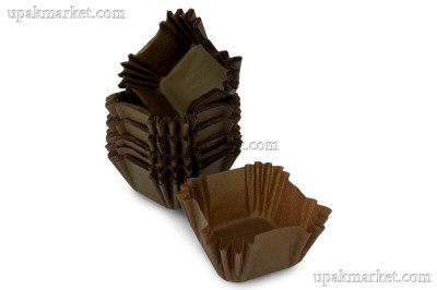 Форма бумажная "Тарталетка" 35х35х22,5мм квадрат коричневая ТБФ /15уп х 1000шт/