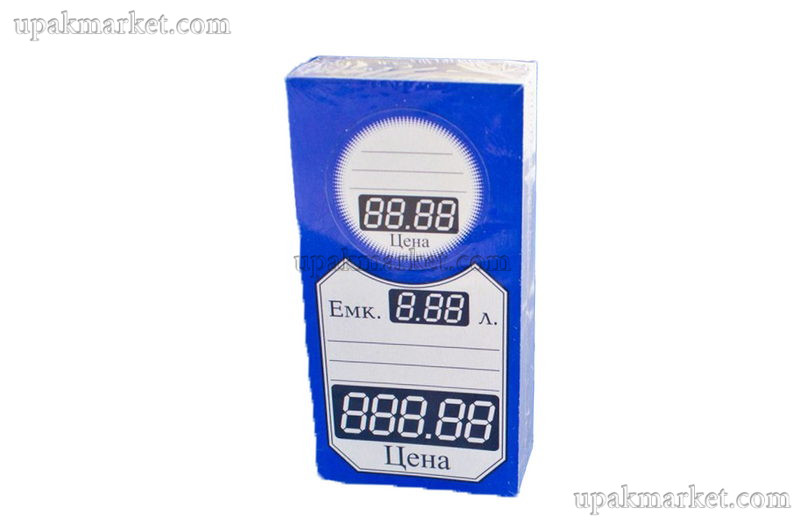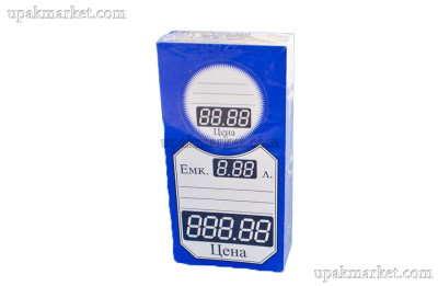 Ценник выполнен из плотной бумаги синего цвета, что делает его заметным и привлекательным для покупателей. На ценнике есть специальное поле для указания цены, которое можно заполнить маркером или ручкой.