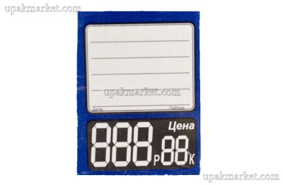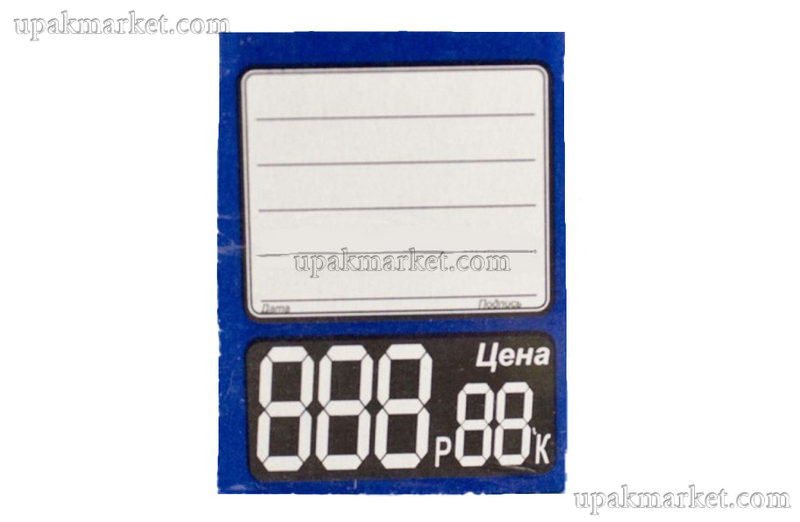 Ценник выполнен из плотной бумаги синего цвета и имеет форму квадрата размером 4,5х3,5 см. Он рассчитан на многократное использование и легко крепится к товару с помощью специального клеящего слоя. Ценник также легко снимается, не оставляя следов на товаре.
