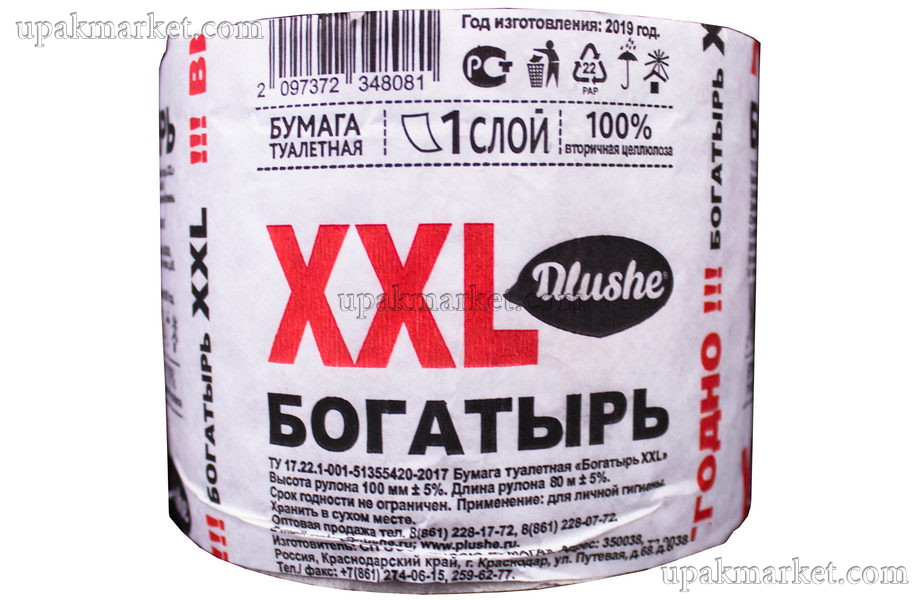 Туалетная бумага Богатырь длина 57м, высота 90мм, диаметр 105