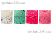 Пакет бумажный подарочный 18х23х10см Люкс c блестками, микс
